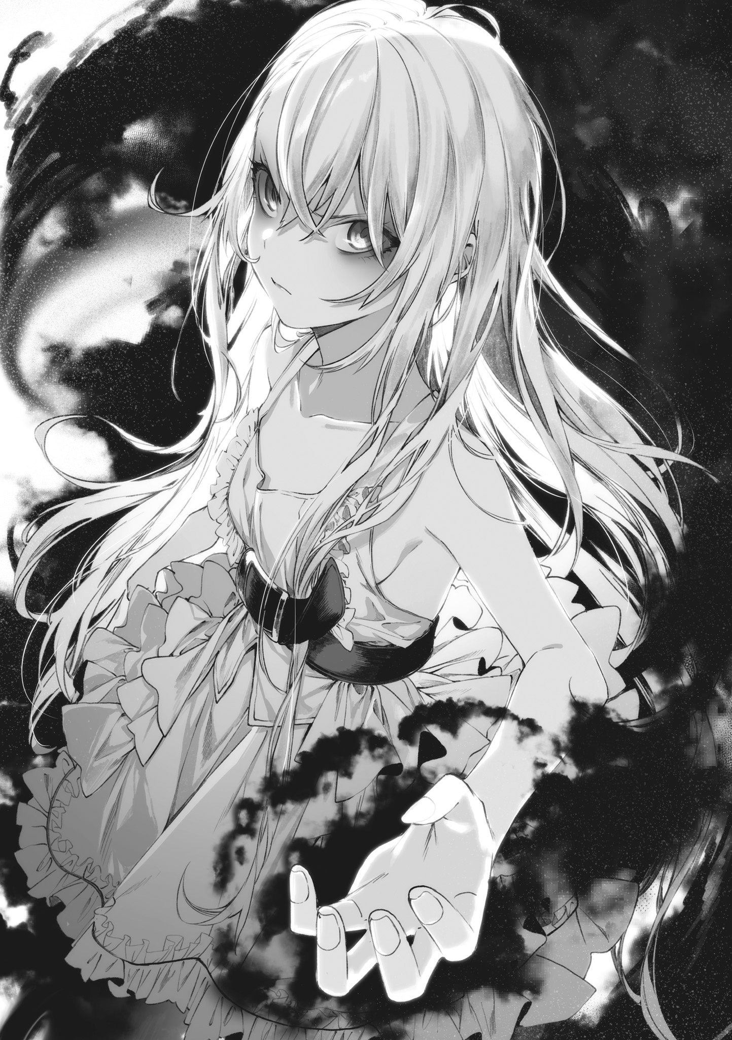 Então, uma névoa negra subitamente irrompeu do corpo da garota.