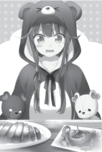 “Todo mundo, vão com calma, tá?” Atola interveio para dar uma pausa no bombardeio de pratos. Bem, se eu não conseguisse comer tudo, era só guardar no armazenamento do urso — tudo certo. Mas, pensando bem, talvez eu devesse comer antes que esfriasse. Tudo estava tão delicioso, afinal.